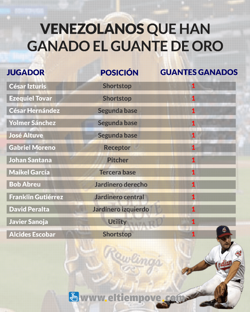 Ezequiel Tovar y Alcides Escobar son los otros venezolanos que aparecen como ganadores del Guante de Oro en las paradas cortas, mientras que como segunda base figuran César Hernández, José Altuve y Yolmer Sánchez, todos con uno.