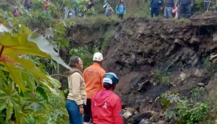 El derrumbe cubrió la carretera con escombros y árboles, lo que impide tanto el tránsito vehicular como el paso peatonal en la zona.