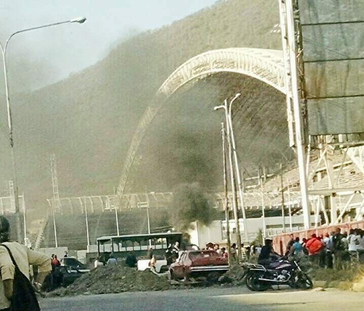 Los manifestantes obstaculizaron el paso desde las 7:00 am. No sólo se atravesaron en la carretera sino que además quemaron cauchos para descargar su rabia.
