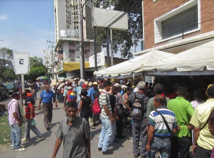 Afuera del Banco de Venezuela había una larga cola de clientes quienes esperaban con la esperanza de que  les dieran efectivo luego del pago de pensiones, pero el gerente les dijo que no era posible, pues primero debían terminar de cancelarle  a los pensionados en una jornada de tres días  consecutivos.
