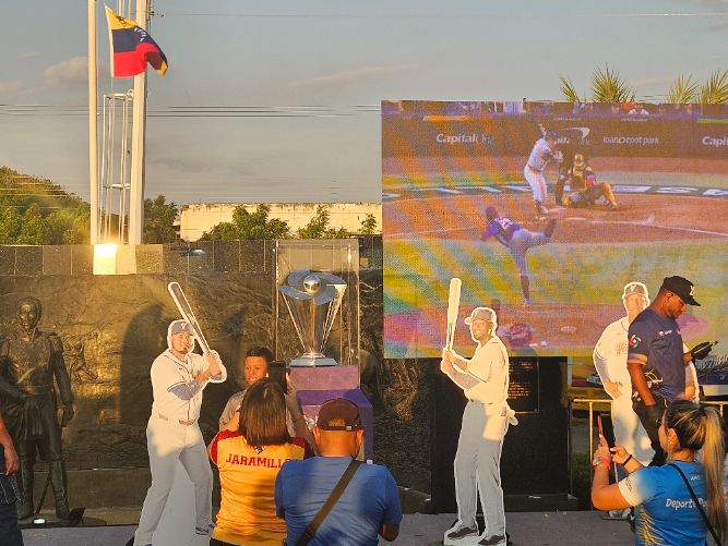 Niños, jóvenes y adultos hicieron largas filas para tomarse fotos junto al símbolo de una de las mayores hazañas deportivas en la historia de Venezuela. A la vez expresaron su orgullo por el logro del grupo de peloteros que incluye nombres como Luis Arráez, Ronald Acuña Jr. o Eugenio Suárez.