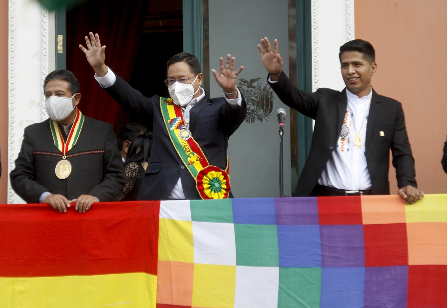 El nuevo presidente de Bolivia, Luis Arce (centro) prometió gobernar en tiempos de austeridad / Foto: Jorge Mamani /AP