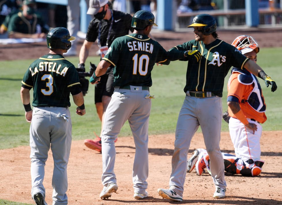 La Stella, Mark Canha, Matt Olson y Semien también conectaron un cuadrangular para Atléticos, cuyo cuadro completo se hundió. Los equipos que superan en jonrones a sus oponentes tienen marca de 18-0 en la postemporada.