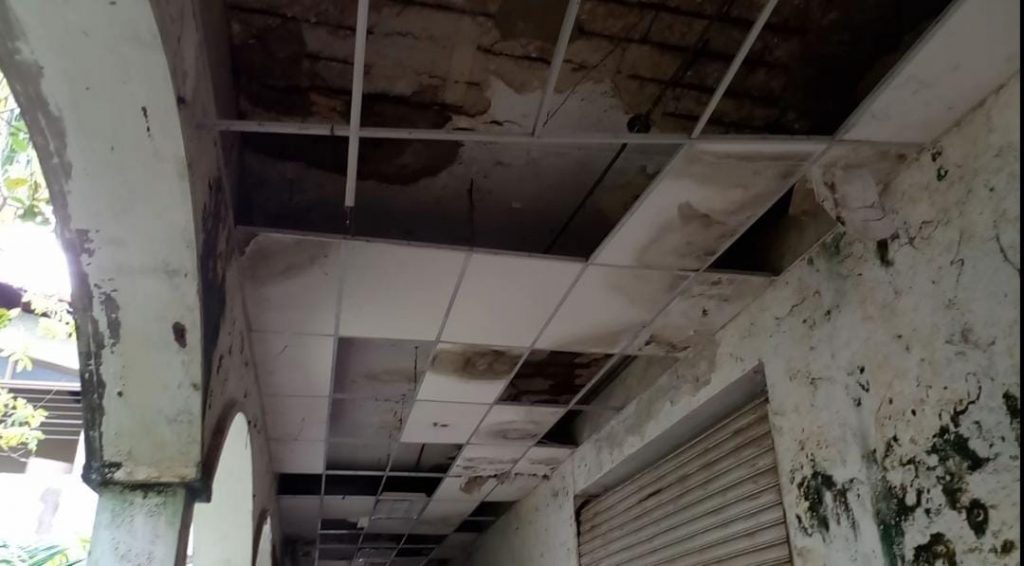 Paredes enmohecidas, estantes arrumados, montañas de papeles dañados por el agua, libros tapados con bolsas plásticas para que no se mojen por las goteras, cielo raso cayéndose a pedazos son parte del panorama que se consigue al entrar a esa casa que tiene más de 72 años de antigüedad. Un punto positivo es el personal que, pese a estas circunstancias, recibe al público con buen ánimo.