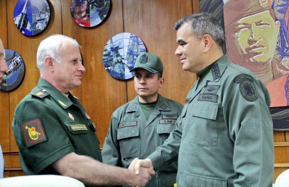 Vladimir Padrino López (der,), ministro de Defensa, se reunió el viernes con las autoridades militares rusas