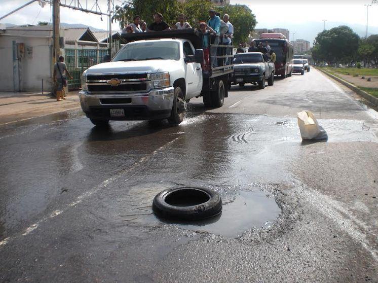 Una tubería rota pareciera el origen del caudal que emana del centro de la vía, sentido elevado-mercado, antes de llegar a la calle Dividive, causando el deterioro progresivo del pavimento.