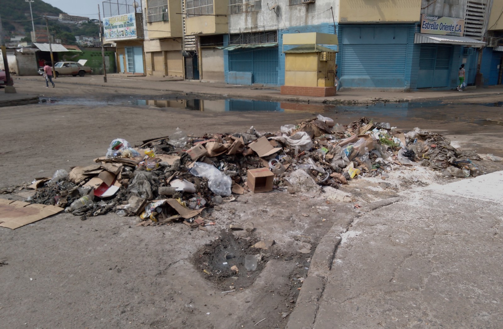 Este lunes 7 de diciembre, la calle Venezuela, una de las que rodean el expendio porteño, exhibía montones de desperdicios, como, por ejemplo, frente a uno de los portones para acceder a las instalaciones y en el cruce con la calle Dividive, donde además abundan los huecos formados por la acumulación de aguas negras.