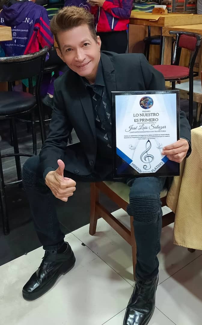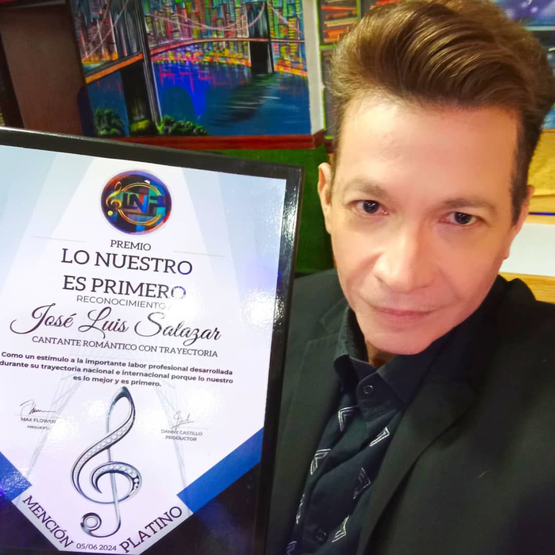 José Luis Salazar, un cantante profesional venezolano cpn 30 años de carrera artística, recibió el premio Lo Nuestro Es Primero 2024, mención platino, como reconocimiento a su trayectoria en el mundo romántico.
