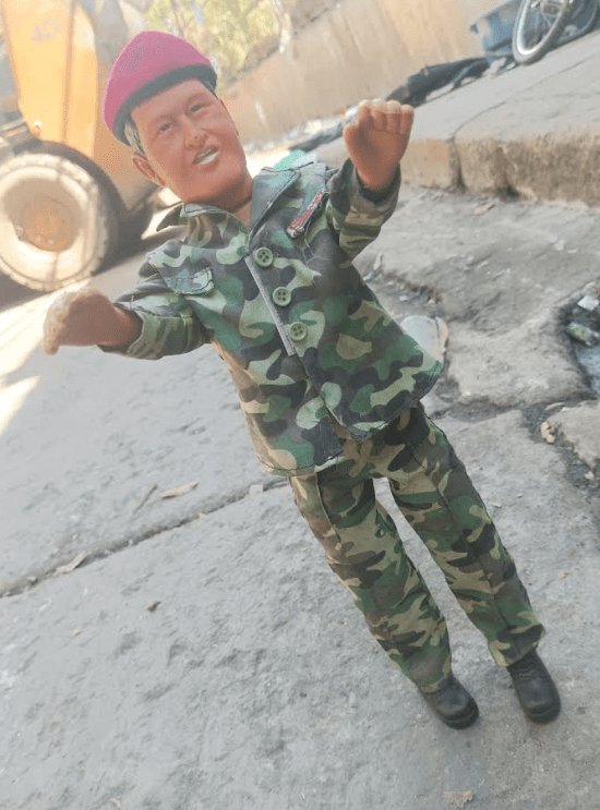 A lado de unos contenedores de basura, cercanos a la jefatura de Santa Rosalía, Liomar, uno de los jóvenes que normalmente hurgaba entre desechos y desperdicios para rebuscarse, había hecho un hallazgo. Se trataba de una figura de juguete de Hugo Chávez, en traje de campaña y con boina. “Te lo dejo a buen precio”, le decía a una persona que se acercó para tomar una foto con su celular. La transacción no se concretó. Liomar resolvió: “Se lo voy a llevar a mi tía”.