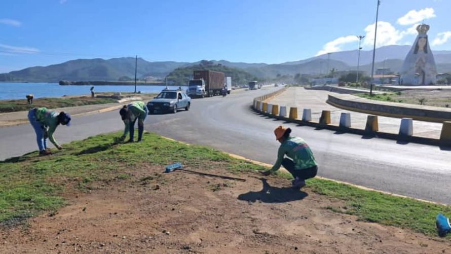Las labores comprenden saneamiento ambiental, desmalezado, recolección de desechos vegetales y remoción de escombros en los alrededores del Paseo de la Virgen del Valle, en la avenida Rómulo Gallegos.