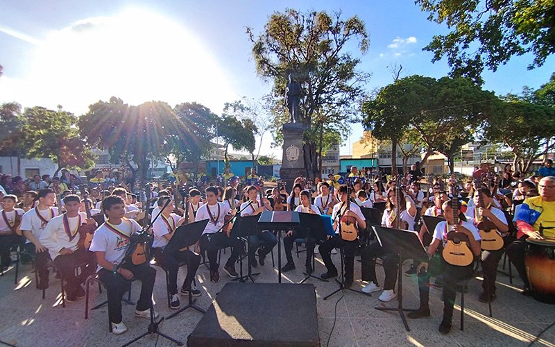 El cuatro, instrumento nacional, tiene su día el 4 de abril, pero fue el pasado jueves 9 cuando el Sistema Nacional de Orquestas y Coros Infantiles y Juveniles de Bermúdez, en el estado Sucre, hicieron vibrar a Carúpano con un concierto en la plaza Bolívar, en el cual participaron 100 músicos de la Orquesta Alma Llanera.