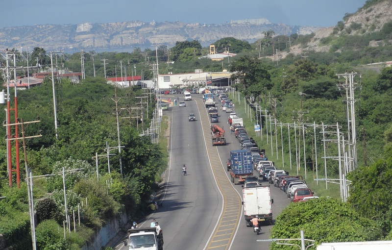 En la estación de servicio Chimana, también dolarizada y ubicada cerca del muelle de los ferrys, a las 10:00 am la cola era menos larga. Juan Arteaga, sentado al volante de su camioneta pickup y con el número 186 pintado en el cristal del auto, esperaba casi al frente del embarcadero para poder avanzar.