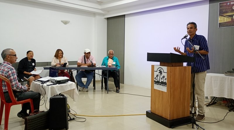 El coloquio de historia se realizó en un salón del hotel Eurocaribe, a donde tuvo que ser trasladado, porque cuando se disponían a hacer la apertura en el Museo Histórico, comenzó a llover y mojó todos los espacios que estaban destinados al evento.