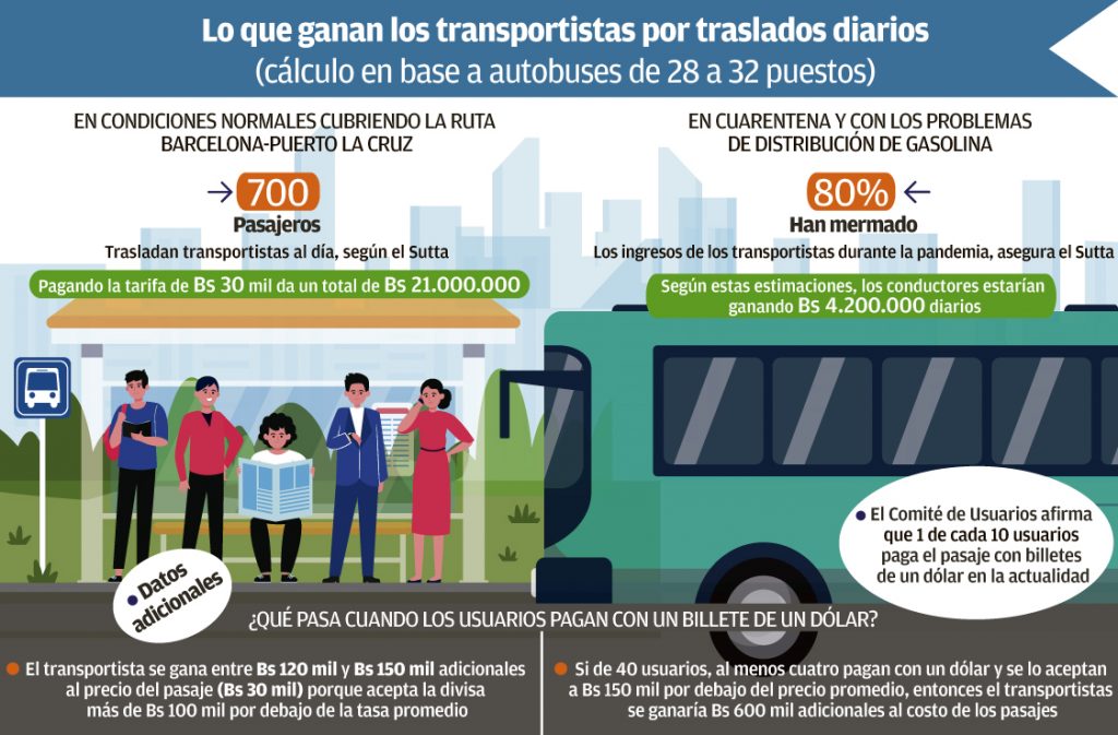 En pocas palabras, la persona que hace esta transacción debe dejar en el bolsillo de los transportistas entre Bs 120 mil y Bs 150 mil adicionales a los Bs 30 mil correspondientes a la tarifa por traslado.