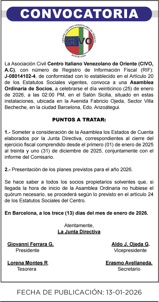 Editores Orientales, C.A. | J-08007736-9 | Todos los Derechos Reservados. © Copyright