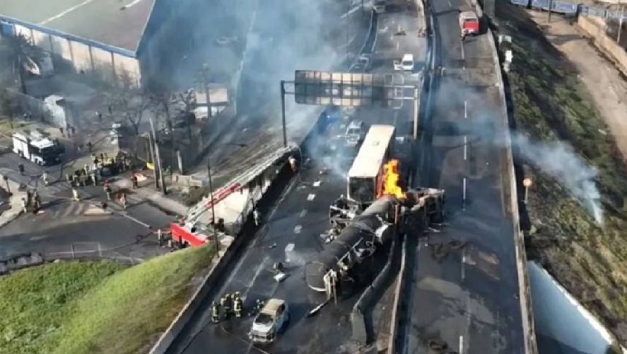 La explosión sucedió en la intersección de la autopista más importante del país, la Ruta 5, con una secundaria y generó un gran incendio que alcanzó a otros siete vehículos, que a la misma hora iban transitando por la autopista, y también un desguace de vehículos, informó la policía chilena.