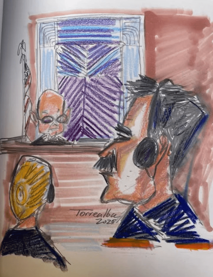 La atención de los venezolanos se centró el pasado 26 de marzo en la segunda audiencia de Nicolás Maduro y Cilia Flores en en una corte de Manhattan. Y aunque no existen fotografías o videos públicos de ese momento, el artista venezolano Jorge Torrealba ha utilizado su talento para capturar la audiencia en caricaturas y así compartirla con sus paisanos.