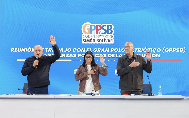 En el encuentro en el Teatro Teresa Carreño, participaron el presidente del Parlamento y hermano de la mandataria encargada, Jorge Rodríguez, y el ministro de Interior, Diosdado Cabello, además de gobernadores, diputados, vicepresidentes sectoriales y representantes del Gran Polo Patriótico.