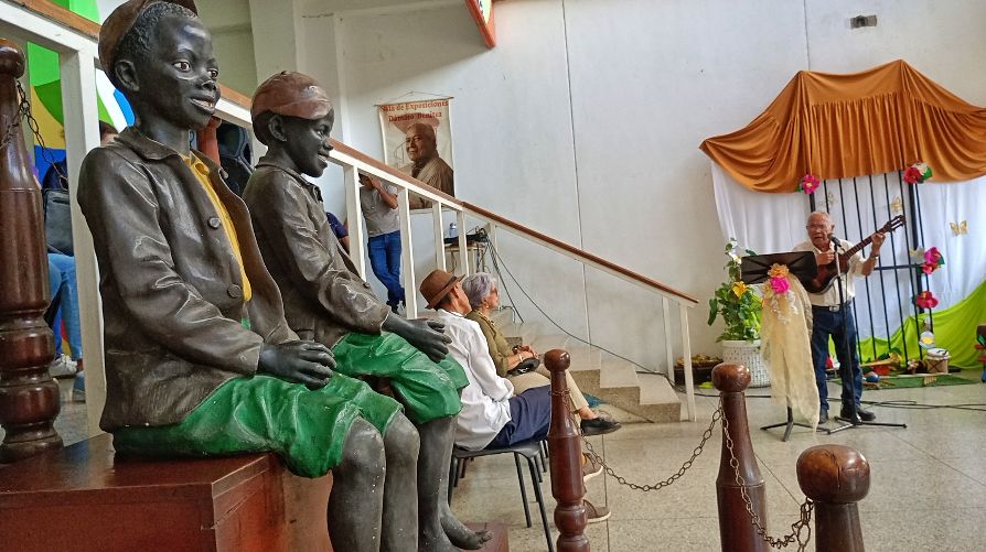 Los "negritos de Cerizola", estatua emblemática del municipio Bermúdez en el estado Sucre, cumplieron este martes 42 años desde su traslado al Ateneo Luis Mariano Rivera de Carúpano. La obra da la bienvenida a propios y visitantes en la entrada de la sala de usos múltiples de la institución.