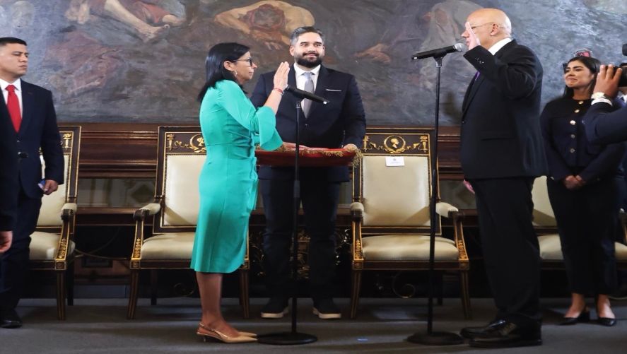 La funcionaria, juramentada por su hermano, el presidente de la Asamblea Nacional (AN, Parlamento), el chavista Jorge Rodríguez, se convierte así en la primera mujer en la historia de Venezuela en encabezar el Ejecutivo.