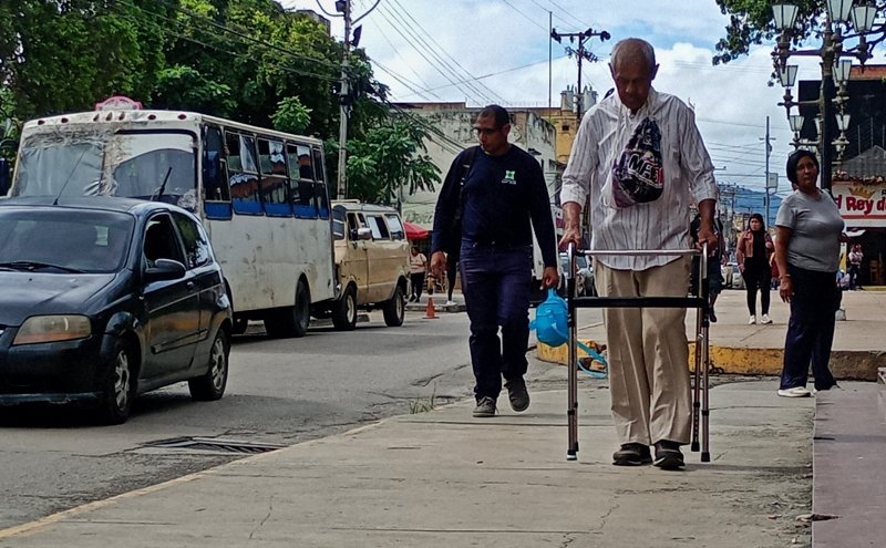 Freddy Gil Martínez, un adulto mayor con evidentes problemas motrices, circulaba entre la plaza Colón y la intersección de la calle Carabobo con la Güiria, con una andadera, y no se limitó al decir que caminar por el centro de Carúpano es una “tortura”.