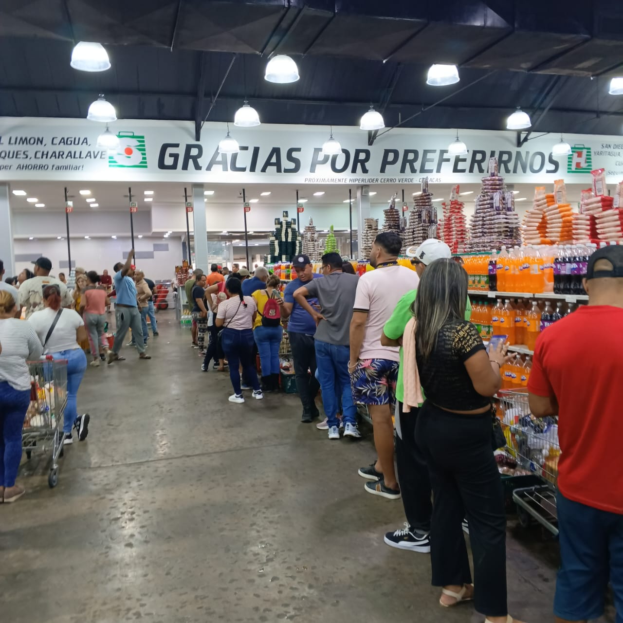 Pasadas las 10:00 am, el panorama se repetía en comercios como Híper Líder, en donde se observó que todas las cajas tenían gran acumulación de ciudadanos, algunos comprando rubros como harina, espagueti, arroz y enlatado al mayor.