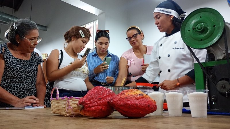 Lucy Luna, instructora del taller, señaló que la intención era que los asistentes aprendieran a trabajar con el cacao, que es un rubro primordial en Paria.