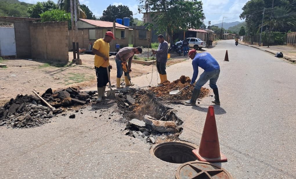 En Playa Grande, la Dirección Integral de Recursos Hídricos de la alcaldía e Hidroven, iniciaron trabajos de excavación para reparar una filtración en la tubería de aguas negras de 10 pulgadas, que permitirá avanzar en la activación de la estación de bombeo, ubicada en esa zona.
