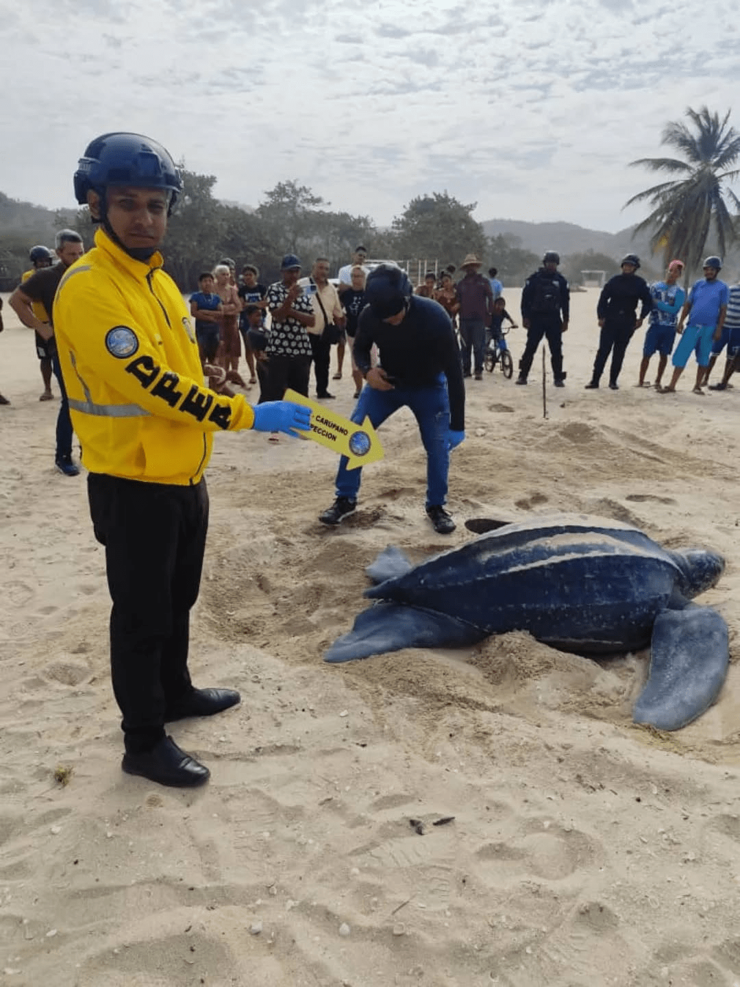 La Dirección de Policía de los Espacios Acuáticos (DPEA) del Cuerpo de Policía Nacional Bolivariana (CPNB) en el estado Sucre, en articulación con el Ministerio del Poder Popular para el Ecosocialismo (MINEC), resguardaron el desove de una tortuga cardón en Playa Copacabana, en Carúpano.