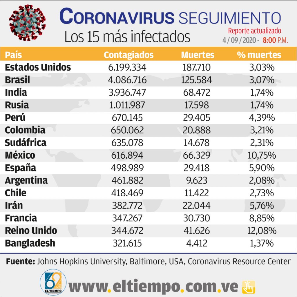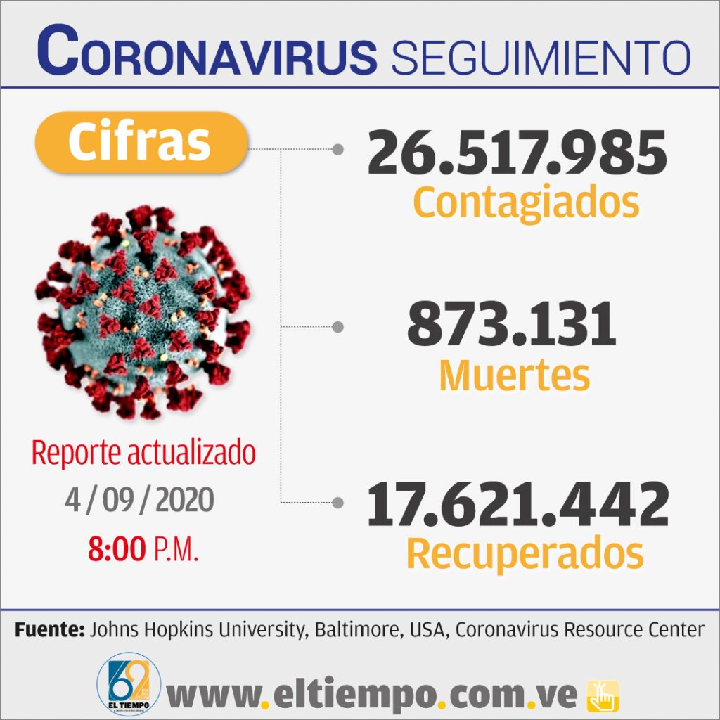 26.517.985 personas han contraído Covid-19 en todo el mundo, de acuerdo con el conteo que realiza la Universidad Johns Hopkins de Baltimore, Estados Unidos.