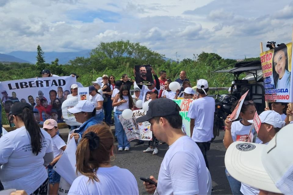 El periodista Luis Gonzalo compartió fotos de la protesta en sus redes sociales  y señaló que los familiares cerraron el puente fronterizo que conecta a Venezuela con Colombia.