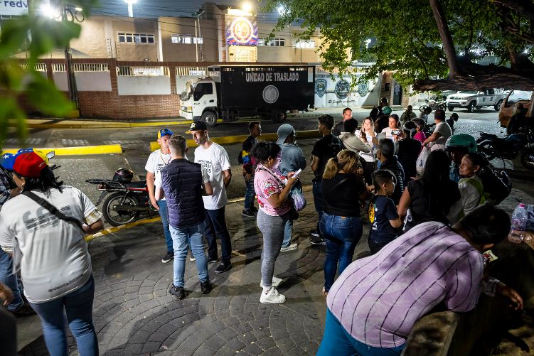 Familiares de presos políticos realizan una vigilia por primera vez a las afueras de una sede de la Policía Nacional al oeste de Caracas, desde donde pidieron este miércoles la liberación de sus parientes, a casi una semana de que se aprobara la Ley de Amnistía en Venezuela.