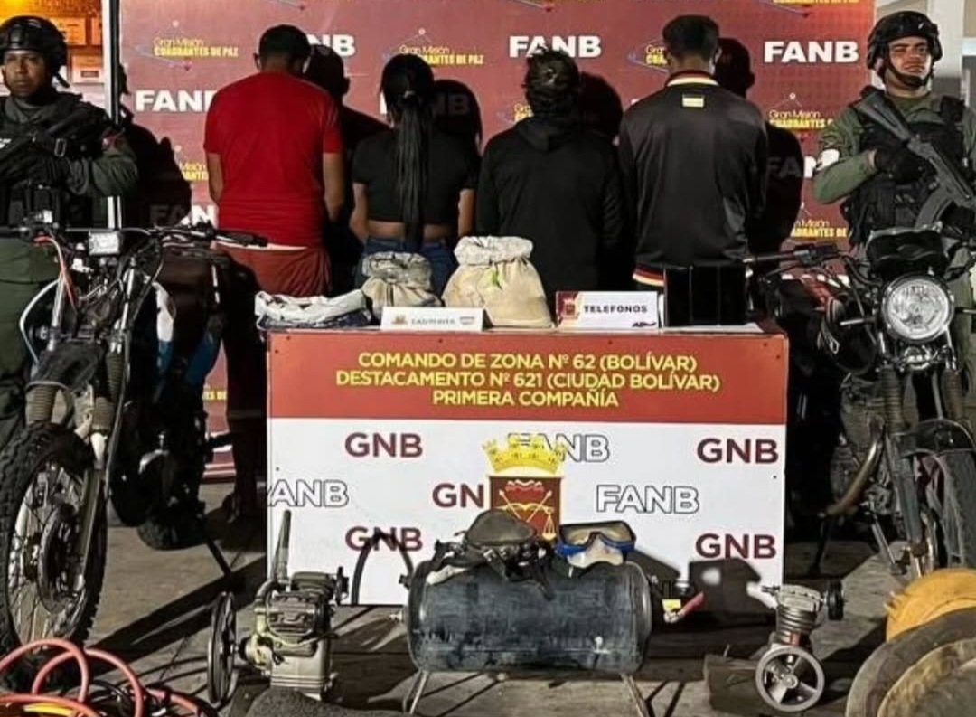De acuerdo con el reporte oficial publicado en Instagram, los sujetos no portaban documentos de identidad al momento del arresto. Durante el operativo, la GNB incautó el siguiente material: