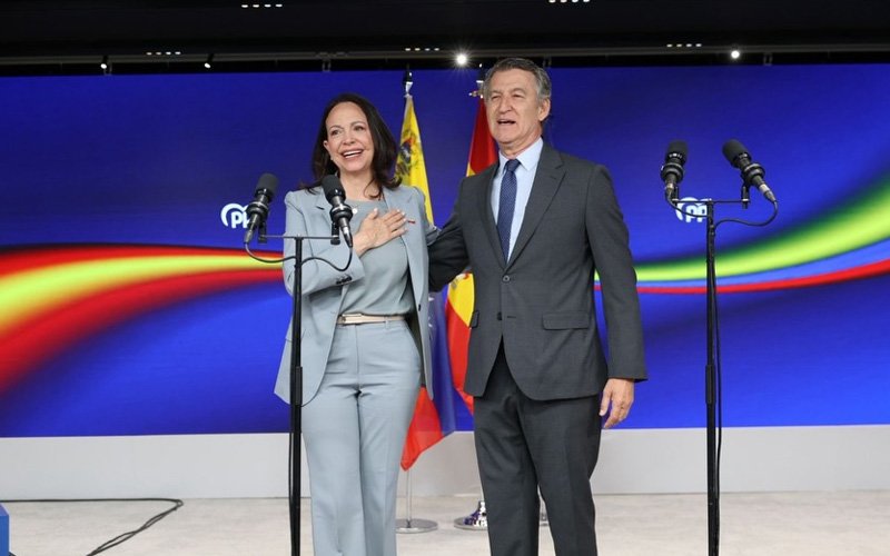 "Reclamamos primero que María Corina pueda volver a Venezuela y segundo unas elecciones libres con calendario explícito y cuanto antes", afirmó Feijóo, que preside el primer partido de la oposición en España al Gobierno de izquierdas.