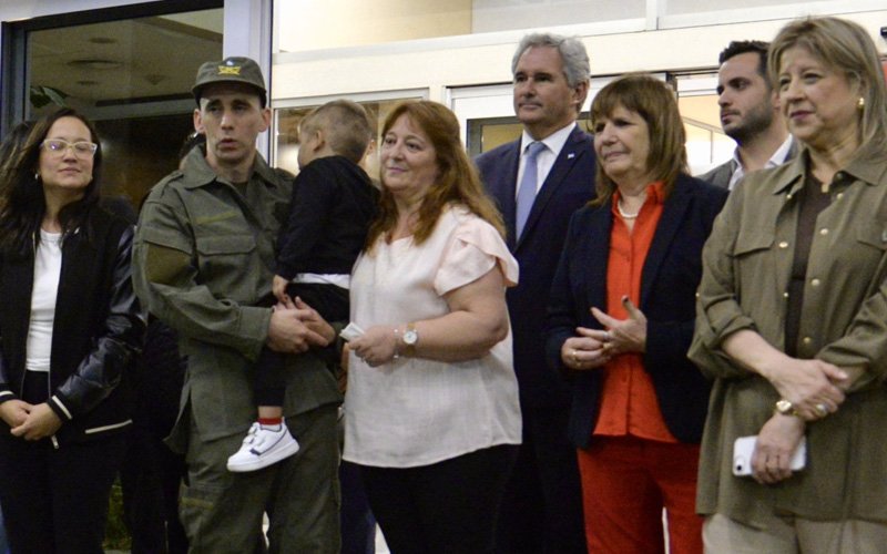El gendarme liberado no dio declaraciones a la prensa, que solo pudo registrar su llegada a Argentina desde una larga distancia.