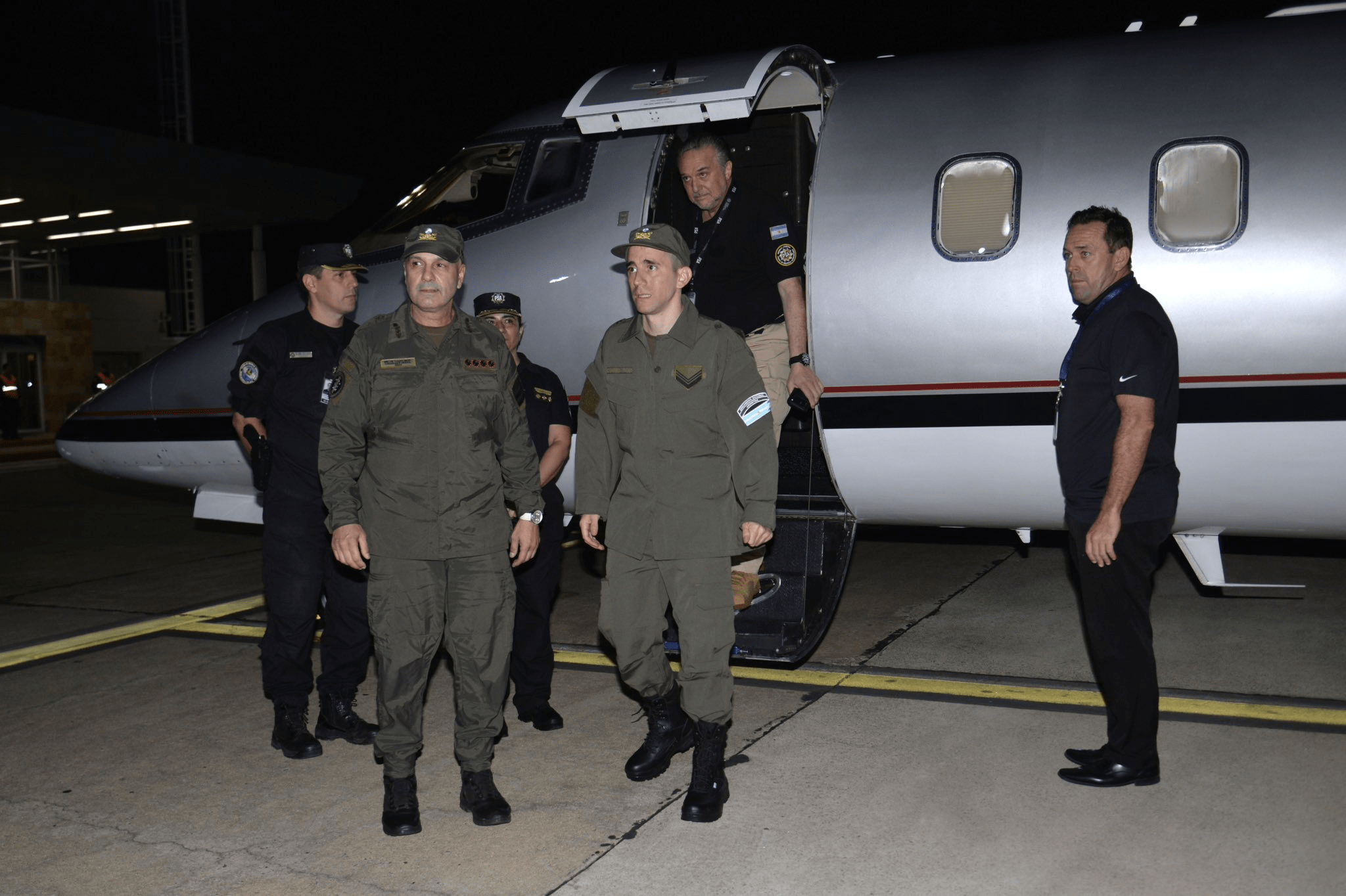 El gendarme llegó a Buenos Aires en un avión privado fletado por la AFA tras muchas horas de viaje, ya que realizó paradas en Guayaquil (Ecuador) y Arica (Chile).