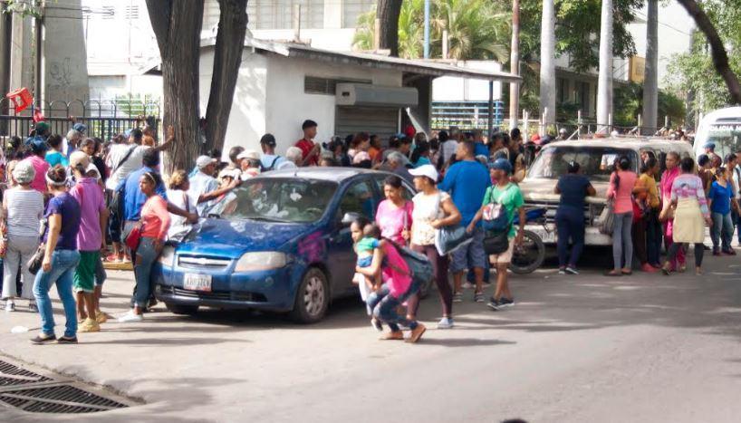 Cerca de las 8:00 am, funcionarios de la Policía Nacional Bolivariana (PNB) y de la Guardia Nacional Bolivariana (GNB) tuvieron que lanzar bombas lacrimógenas, y hasta perdigones, para calmar la multitud de personas que desde la madrugada hacía cola, divididas en tres grupos: hombres, mujeres, tercera edad y discapacitadas.