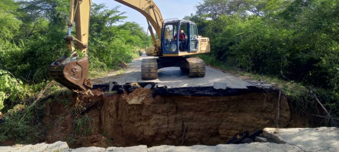 Pasadas las 7:00 am de este martes, iniciaron los trabajos de reparación de la alcantarilla que colapsó totalmente este lunes en el sector La China del municipio Bolívar, sentido hacia la comunidad vecina de San Miguel de Peñalver, tras las fuertes precipitaciones registradas en la zona.