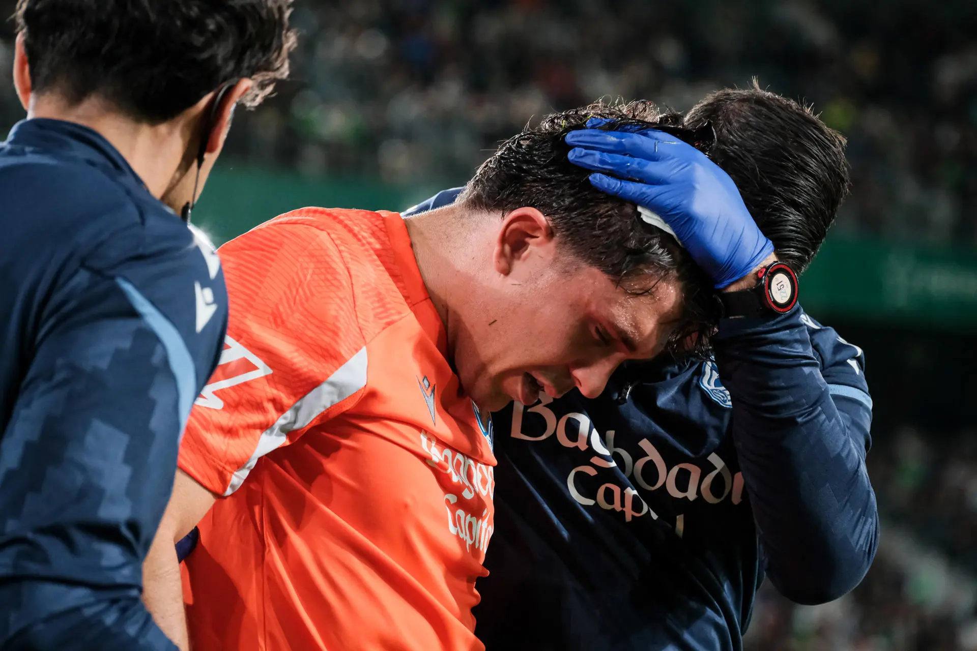 El lateral internacional recibió una patada de John Donald en el tiempo de descuento y tuvo que ser sustituido por Elustondo. El de Caracas tenía una aparatosa brecha en la cabeza y el club ha confirmado que sufre un traumatismo craneoencefálico.