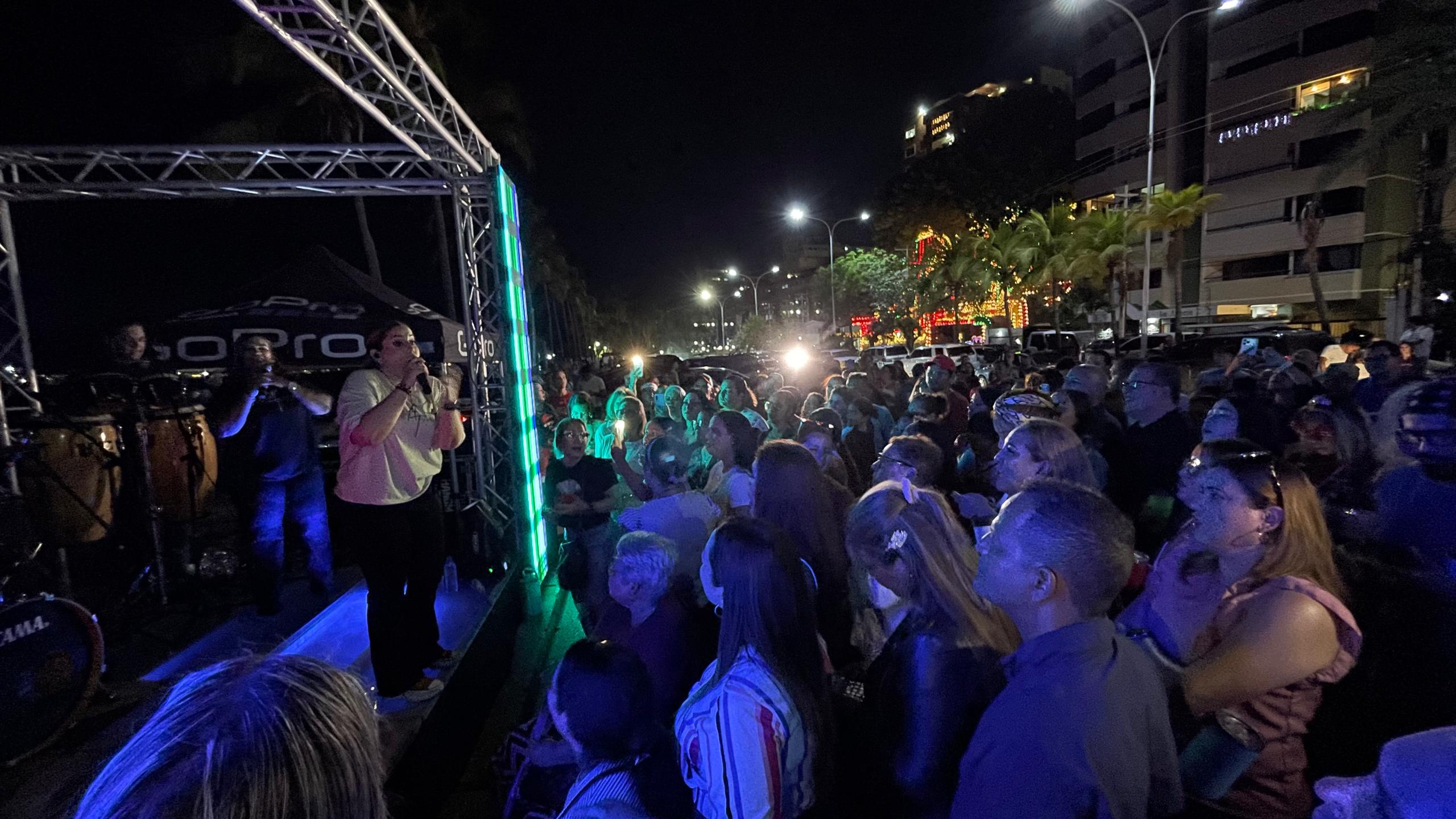La cantante anzoatiguense Andrea Tachinamo ofreció este sábado 13 de diciembre un concierto gratuito titulado “Tarde de Romance. El evento tuvo lugar pasadas las 5 de la tarde, en el bulevar de Playa Mansa, en Lechería.