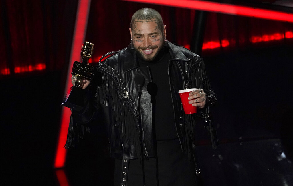 Tras dar a conocer que Malone se alzó con el máximo honor de la noche, a mejor artista, Clarkson le entregó ocho trofeos más al cantante.