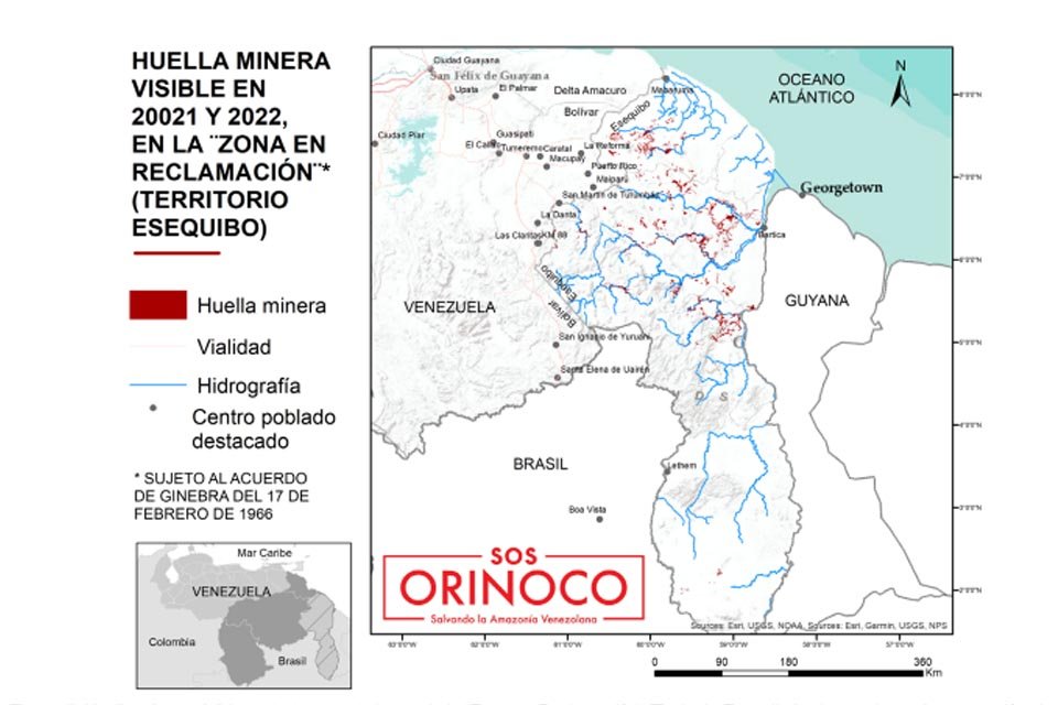 SOS Orinoco calculó que entre 2000 y 2021, el Esequibo perdió al menos 135.318 hectáreas de bosques tropicales. «Esta destrucción supera la huella de la minería aurífera evidente en el estado Bolívar», aseveró la ONG en su informe.