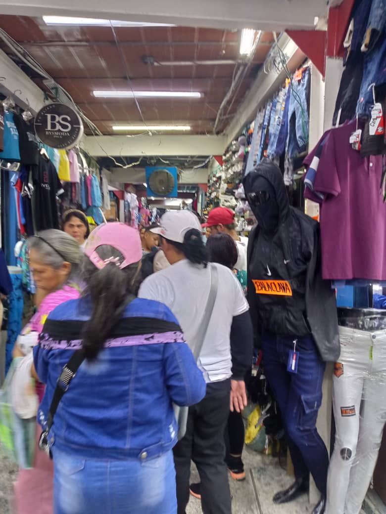Mientras, los pasillos del Mercado de La Hoyada se encontraban abarrotados de gente en ese momento. Zapatos, pantalones, camisas y prendas de todo tipo, eran ofrecidos sin descanso.