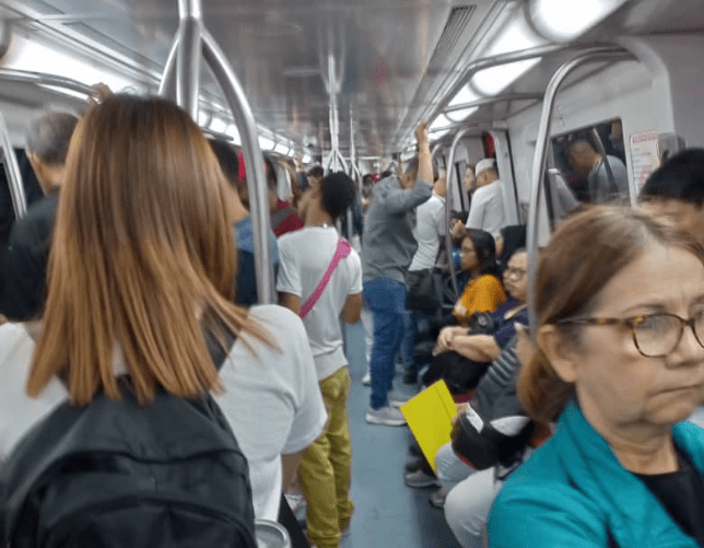 En el Metro de Caracas, el trayecto desde la estación Plaza Venezuela en dirección Palo Verde, muestra vagones repletos de pasajeros.