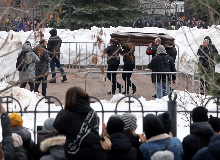 La despedida de Navalni tuvo lugar entre estrictas medidas de seguridad y un despliegue policial sin precedentes en el barrio de Mariino.