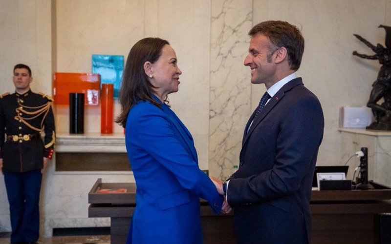 Macron habló con Machado de la "importancia" de una "transición democrática" en Venezuela