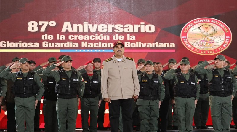 "Les puedo decir a los que dirigen desde el imperialismo norteamericano este golpe de Estado ciber fascista criminal y a la oligarquía criminal y fascista (...) que la FANB está cohesionada, unida y en combate por la paz, la democracia, la constitución y en protección del pueblo", dijo Maduro en un acto con la Guardia Nacional Bolivariana (GNB, Policía militarizada).