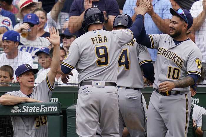 Piña tuvo un grand slam y un jonrón de dos carreras. Jace Peterson agregó cinco hits, incluido un jonrón, ya que el líder de la División Central de la Liga Nacional completó una barrida de cuatro juegos a pesar de que el abridor All-Star Brandon Woodruff hizo una salida anticipada.