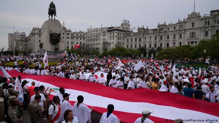 Cientos de personas se unieron el martes 3 de enero a la marcha por la paz en varias ciudades de Perú para expresar su rechazo a la violencia desatada en las protestas de diciembre último y dar su respaldo al gobierno de Dina Boluarte, que sucedió en el cargo al destituido expresidente Pedro Castillo.