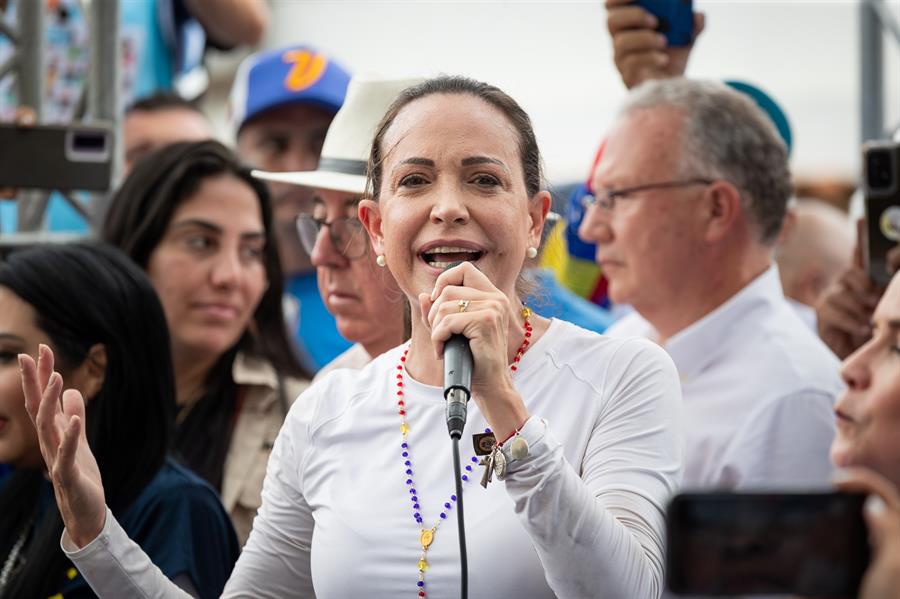 Ella ganó las elecciones primarias del principal bloque de la oposición para competir por la Presidencia de la República, pero está inhabilitada para cargos públicos electos, así que la Plataforma Unitaria Democrática (PUD) escogió en su lugar a Edmundo González Urrutia como candidato.